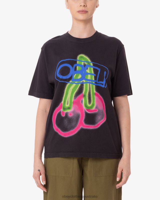 OBEY FUZZY CHERRY PIGMENT T-SHIRT Pigment Digital Black | OBEY Shirts Australia DNHP0612 Women