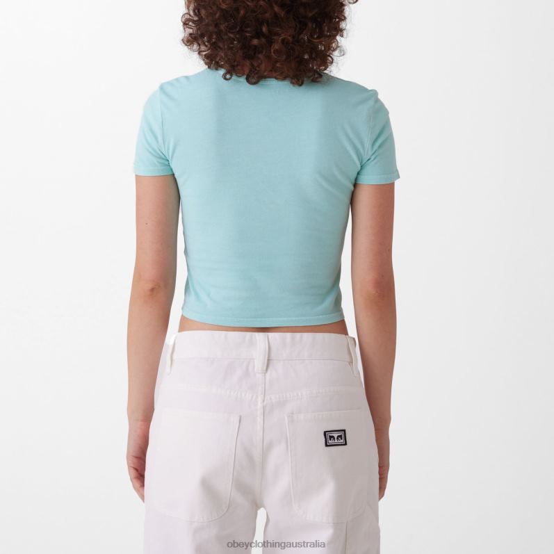 OBEY HOUSE OF BUTTERFLY CROPPED CHLOE FITTED T-SHIRT Pastel Turquoise | OBEY Shirts Australia DNHP0734 Women