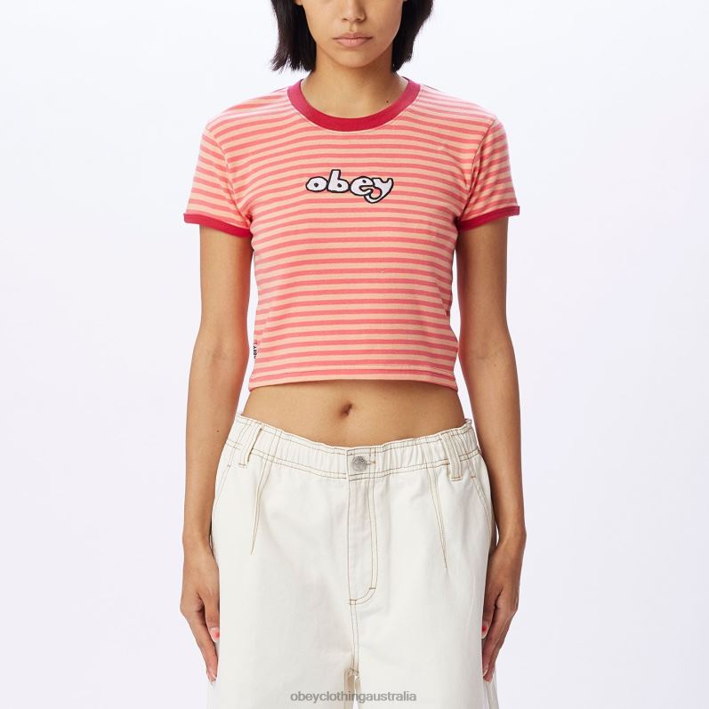 OBEY ZOE BABY RINGER T-SHIRT Pink Punch Multi | OBEY Shirts Australia DNHP0730 Women